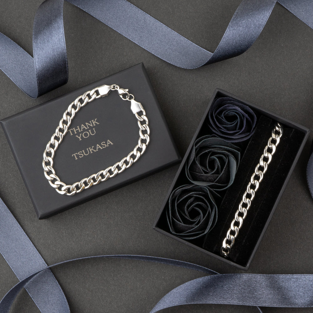 男性へのプレゼントにもピッタリのチェーンブレスレットです。