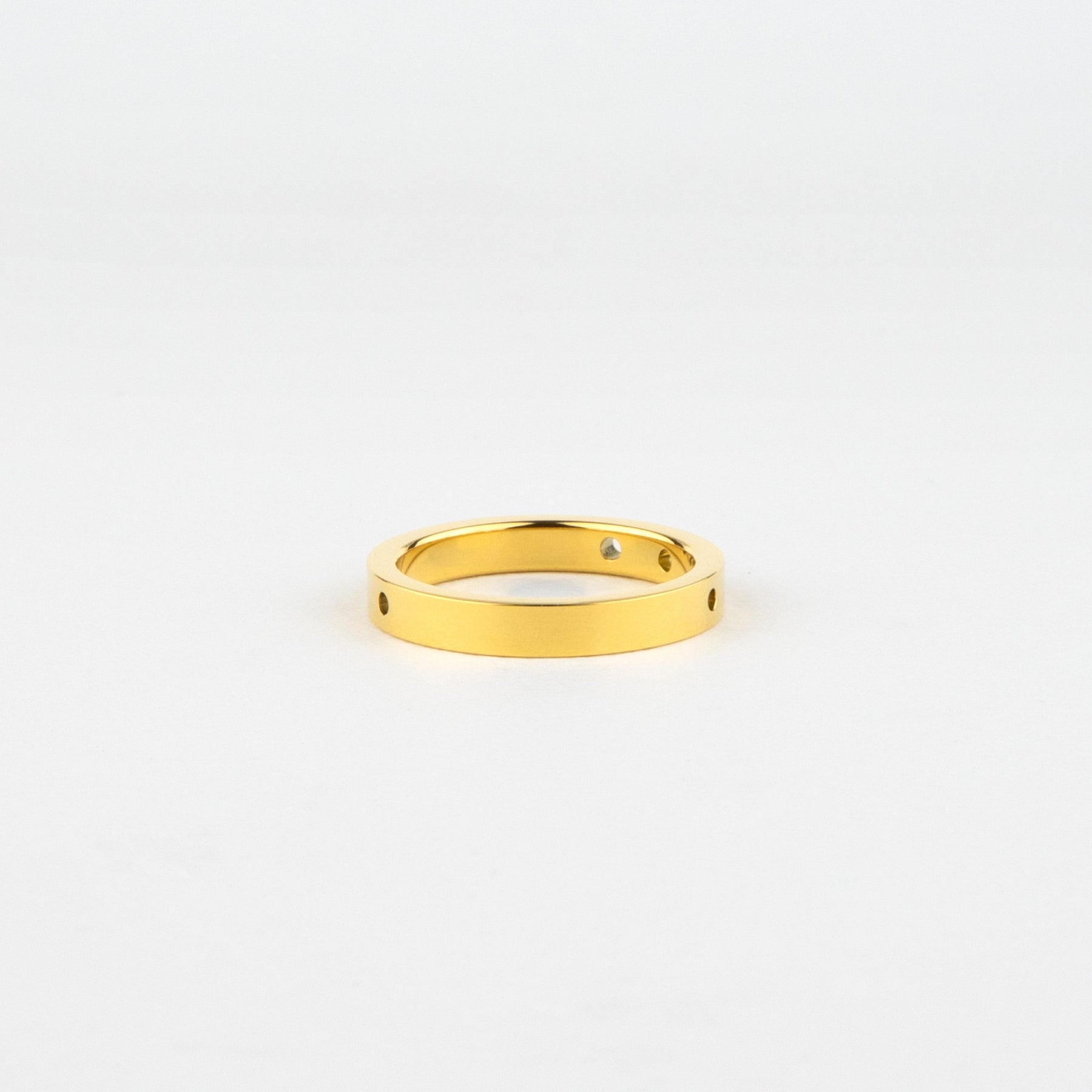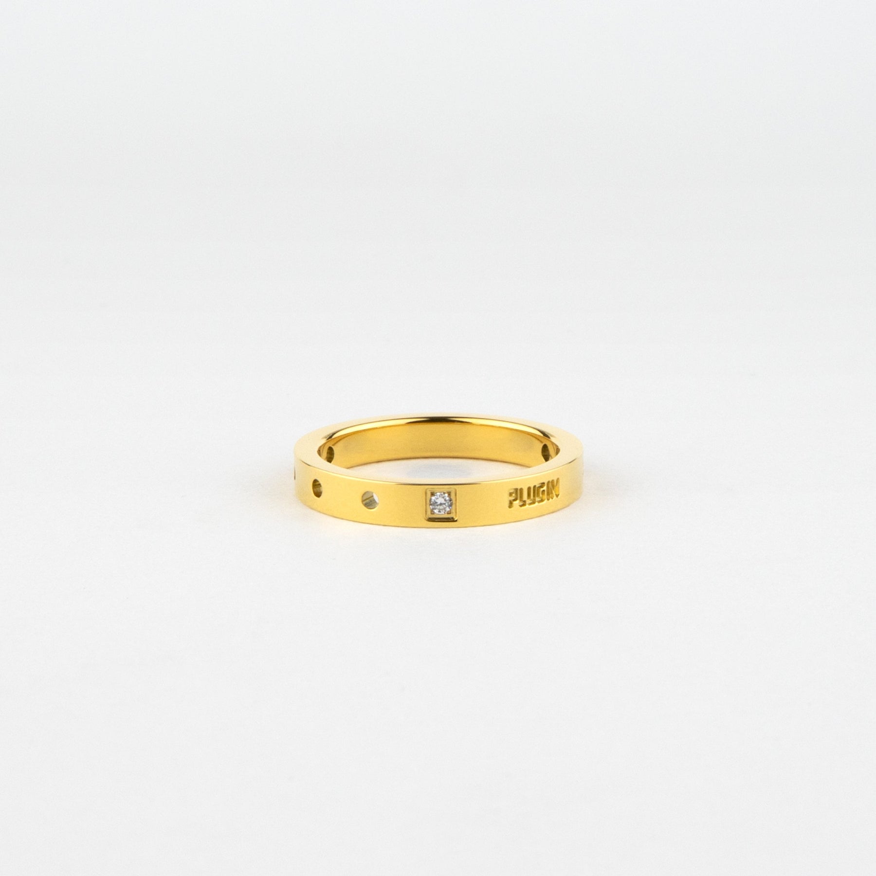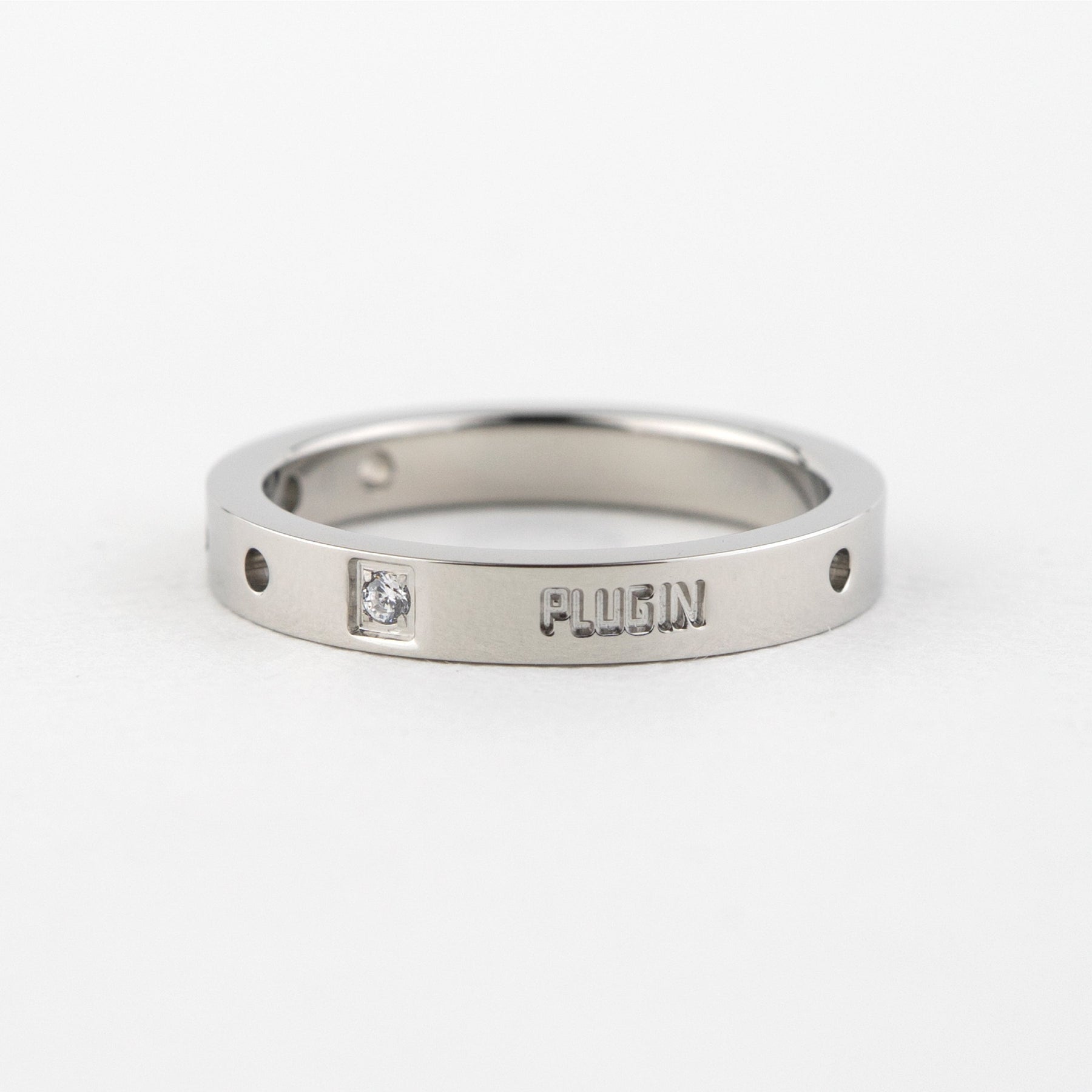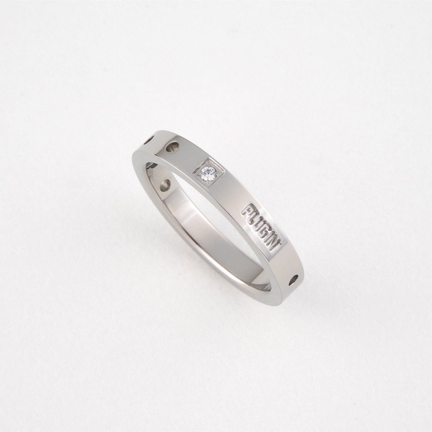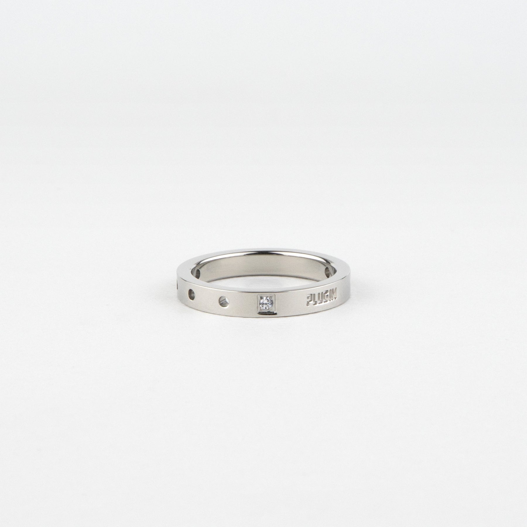 ちょっぴり硬さのあるシンプルなリング 石とパンチングで個性を表現。