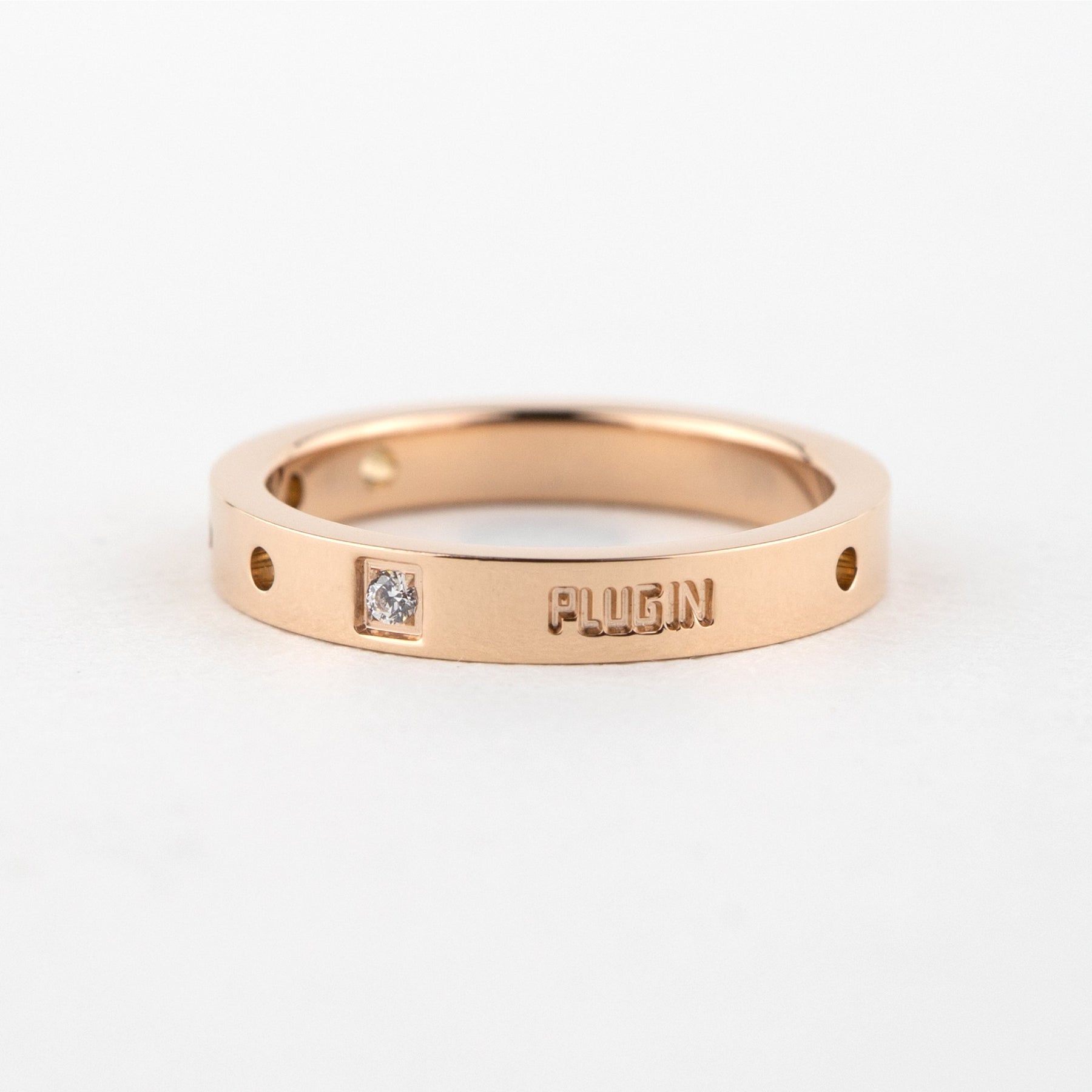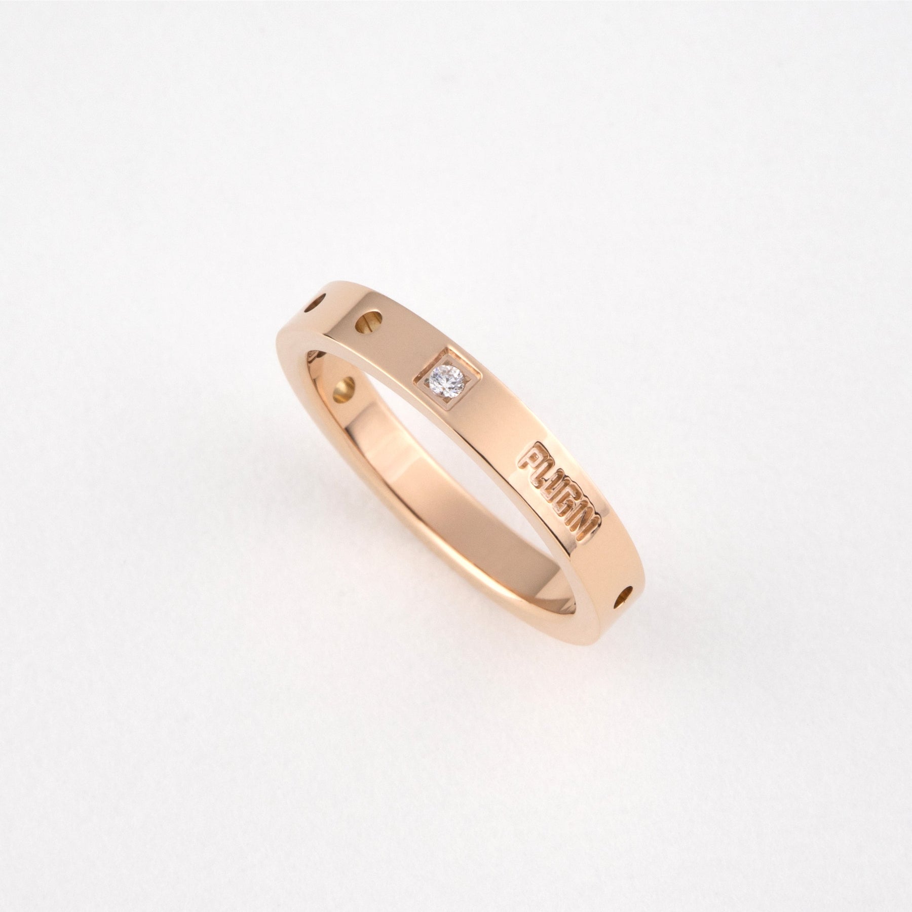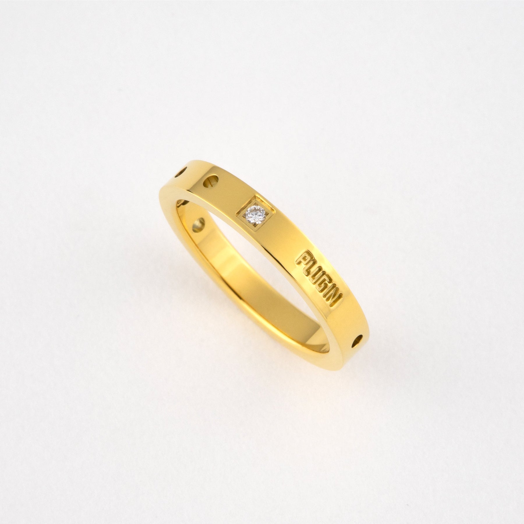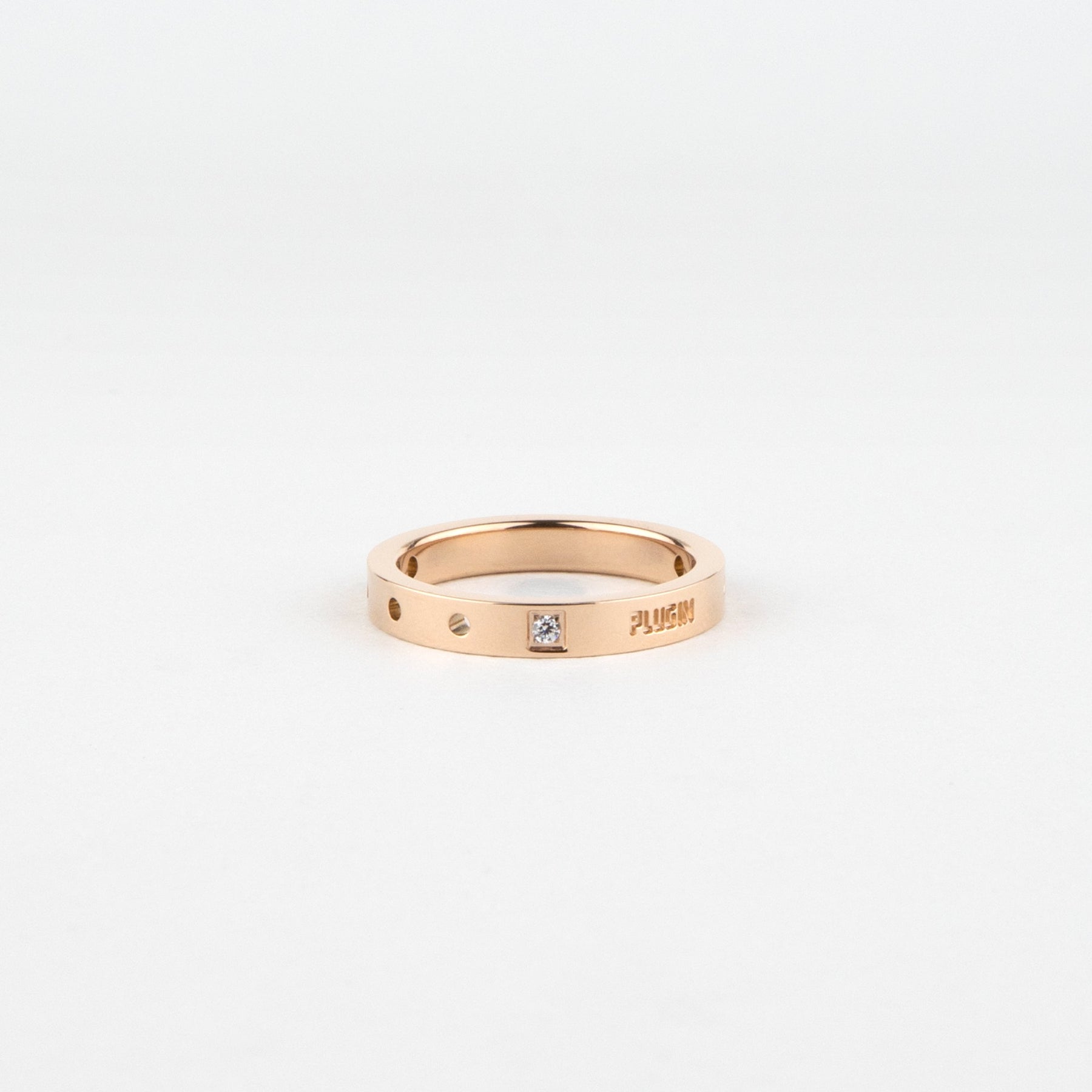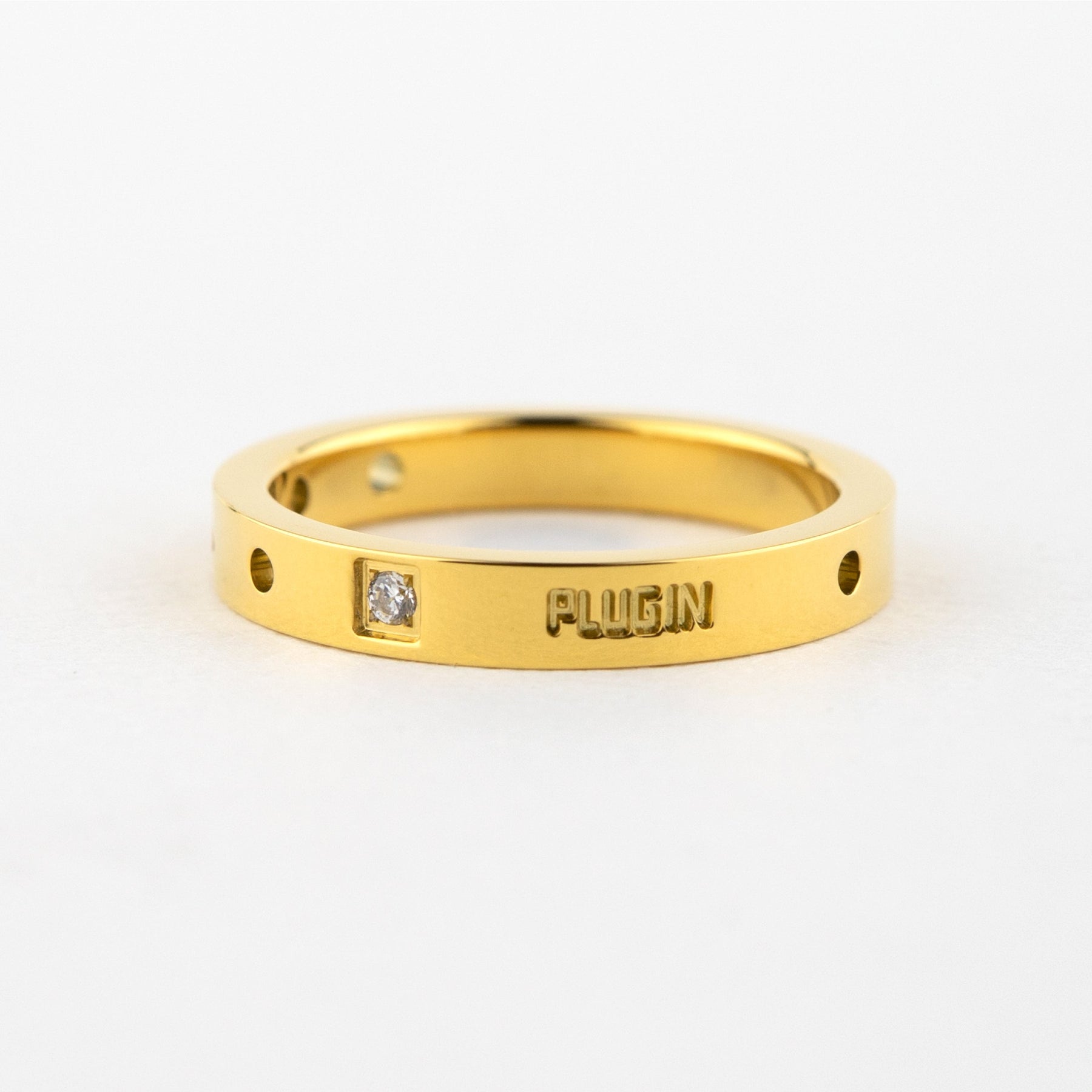 ちょっぴり硬さのあるシンプルなリング 石とパンチングで個性を表現。